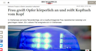 تعرضت سيدة محجبة لاعتداء على يد شخص عنصري في العاصمة الألمانية برلين، هاجمها خلال تناولها الطعام. صحيفة “تاغ شبيغل” الألمانية، قالت الأحد 10 يوليو/تموز 2022، إن العنصري البالغ من العمر 37 عاماً، مزق حجاب سيدة تبلغ من العمر 39 عاماً، واعتدى عليها ضرباً أثناء تناولها الطعام في مطعم يقع بمنطقة فايسنسي. أشارت الصحيفة إلى أن السلطات الأمنية بدأت تحقيقاً واسع …