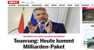 ناقشت حكومة النمسا برئاسة المستشار كارل نيهمر اليوم الاثنين الموافق 13 من يوليو 2022، خطة لمكافحة التضخم فى البلاد بقيمة خمسة مليارات يورو تنفذ على مرحلتين. جاء ذلك اجتماع قيادات الحكومة اليوم مع ممثلي منظمات المجتمع المدني لبحث أولويات وسبل تخصيص المزيد من الأموال للأسر وللعاطلين عن العمل ورفع الحد الأدنى للمعاشات. وأشار الدكتور ماجنوس برونر وزير المالية النمساوي فى …