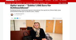 حذرت سيدة في فيينا من عملية نصب محترفة بعد أن دفعت 1,156 يورو مقابل خدمة مفتاح منزلية لم تحقق أي فائدة، مع إبقاء الباب مثقوبًا في نهاية المطاف.
