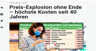 تتسارع وتيرة ارتفاع أسعار الأغذية وسلع الاستهلاك اليومي في النمسا على وقع التوترات السياسية بين روسيا وأوكرانيا وجائحة كورونا بخطوات غير مسبوقة منذ 40 عام ، وفقاً لكتب الإحصاء النمساوى فقد أرتفع معدل التضخم بالنمسا في أبريل إلى 7.2% مقارنة بنفس الشهر من العام الماضي ، فقد بلغ معدل التضخم لشهر أبريل 2022، 7.2٪ (مارس 2022: 6.8٪) وكانت على سبيل …