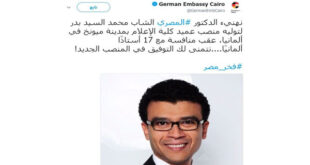 اقرأ المزيد »مصري شاب عميدا لكلية الإعلام بميونخ بعد منافسة مع 17 أستاذًا ألمانيًا