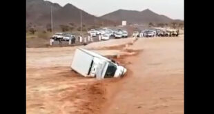 تداول رواد مواقع التواصل الاجتماعي في السعودية مقطع فيديو يوثق سيلا مائيا مخيفاً في وادي الجريسية بشمال مهد الذهب بالمدينة المنورة، تسبب في انقلاب شاحنة وإعاقة حركة السير. وانتشرت الكثير من الفيديوهات في مواقع التواصل الاجتماعي والصفحات الإخبارية، حيث يظهر احتجاز السيول لشاحنة انقلبت على جانبها ولم تستطع المغادرة بسبب المياه الغزيرة، بالإضافة إلى وقوف عدد من المارة والمركبات على …