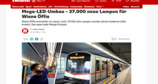أعلنت الخطوط العامة في فيينا (Wiener Linien) عن استكمال مشروع ضخم لتجديد الإضاءة الداخلية لمركباتها، حيث تم استبدال 27,000 لمبة قديمة بمصابيح