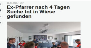 تكثف رجال الشرطة النمساوية لكشف غموض العثورعلى جثة قس سابق يبلغ من العمر 82 عام ، في أحد في الغابات بغرب النمسا ، في منطقة Bürmoos (Flachgau) يوم الأحد الماضى الموافقر13 أبريل 2022 يوم عيد الفصح ، وأستبعدت الشرطة بعدم وجود شبهة جنائية أو طرف ثالث أبلغ رفيق السكن السابق عن فقدان صديقة البالغ من العمر 82 عاماً يوم الأربعاء …