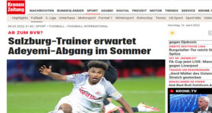 كشفت تقارير صحافية صادرة من إنجلترا أن ليفربول بدأ محادثات مع نجم سالزبورغ النمساوي كريم أديمي، وذلك لتأمين بديل بالخط الهجومي في حال لم تكلل مفاوضات تجديد عقد محمد صلاح بالنجاح. وفى أتصال شخصى مع اللأعب أديمى أكد الخبر بوجود فعلاّ مفاوضات بين نادية سالزبورج وبعض الأندية الأوروبية تدور حول 35 إلى 50 مليون إيرو للأنتقال فى الميركاتو الصيفى ولا …