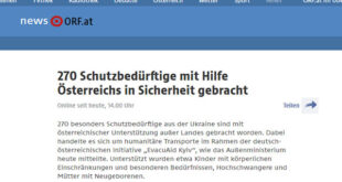أعلنت وزارة الخارجية النمساوية، اليوم الاثنين، أنه تم إحضار 270 شخصًا معرضين للخطر من أوكرانيا إلى النمسا بالتعاون مع المبادرة الإنسانية الألمانية النمساوية. وأوضحت وزارة الخارجية – في بيان – أن الأفراد الذين تم إحضارهم من أوكرانيا هم من الأطفال ذوي الإعاقات الجسدية والاحتياجات الخاصة الأخرى والنساء الحوامل والأمهات حديثي الولادة، مشيرًا إلى أن هؤلاء الأشخاص كانوا في أمس الحاجة …