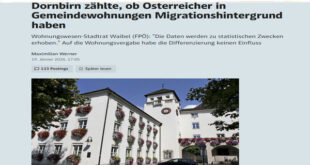 أثارت مدينة Dornbirn في ولاية فورآرلبرغ جدلًا بعد إعلانها عن تسجيل ما إذا كان حاملو الجنسية النمساوية المقيمون في الشقق البلدية يتمتعون بخلفية مهاجرة أم
