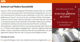 صدر مؤخراّ الكتاب الثانى باللغة الألمانية لمدرس مادة الدين الإسلامي في المدارس النمساوية بولاية “كيرنتن” للأستاذ “أمير محمد الأمين” بعنوان “هل القرآن أخطر من كورونا؟” للرد على السياسي المثير للجدل دائماّ السيد “نوربرت هوفر” رئيس حزب الحرية اليمينى السابق ، في مقولته الشهيرة أيام الحملة الأنتخابية البرلمانية للعام 2020 “أن القرآن أخطر من كورونا” وذكرت وكالة الأخبار النمساوية “APA” أن …