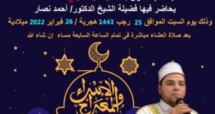 تنظم إدارة مسجد الفتح بالحى الخامس عشر – فيينا ، ندوة بمناسبة ذكرى الإسراء والمعراج، تناولت دلالات المعجزة والدروس والعبر المستفادة منها ، ذلك يوم السبت القادم الموافق 26 من فبراير في تمام الساعة السابعة مساء بمقر المسجد والمعروف أن حادثة الاسراء والمعراج حادثة إمامة في العقيدة، وإشارة خالدة لمكانة الأمة الإسلامية وعموم رسالتها تجسيداً لقوله سبحانه:” وَمَا أَرْسَلْنَاكَ إِلَّا …