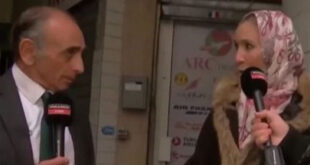 دخل الكاتب الفرنسي إريك زمور، المعروف بمواقفه المناهضة لتعاليم الإسلام، في نقاش وتحدي مع سيدة من أصول مغربية، مطالبًا إياها بخلع الحجاب لتثبت أنها “حرة”. جاء ذلك عبر برنامج ”في مواجهة الشارع“ التلفزيوني، الذي يعرض على قناة ”سي نيوز“ الفرنسية، ويستضيف سياسيين نساء ورجالا، في الشارع ويكون لقاؤهم مباشرة مع مواطنين عاديين. ويبدو أن صاحب البرنامج اختار أن يكون أول …