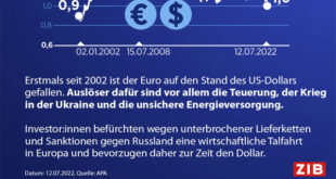 تراجعت قيمة العملة الأوروبية الموحدة (اليورو) اليوم الثلاثاء لتبلغ دولارًا أميركيا واحدًا، في مستوى لم يُسجل منذ عام طرح اليورو للتداول قبل 20 عامًا، وذلك في ظل المخاطر الناجمة عن قطع إمدادات الغاز الروسي على الاقتصاد الأوروبي. وبلغت قيمة اليورو دولارا واحدًا نحو الساعة 09:50 بتوقيت غرينيتش لفترة وجيزة، في سابقة لم تحدث منذ ديسمبر/كانون الأول 2002، قبل أن ترتفع …