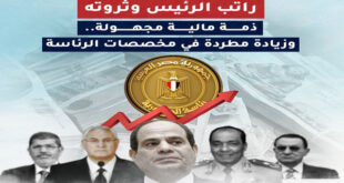 سلطت منصة “صحيح مصر” الضوء على ثروة الرئيس المصري عبد الفتاح السيسي وراتبه الرسمي الذي من المفترض أنه يتقاضاه عن مهامه الرئاسية، وذلك بعد أن نشرت صحف ومواقع مملوكة للدولة تقاريرًا صحفية عن حجم ما يتقاضاه الرئيس الأمريكي جو بايدن. حيث لفت تحقيق المنصة الذي رصدته (وطن) إلى أن السيسي يخالف الدستور وتحديدا المادة 145، ولا يعلن إقرار الذمة المالية …