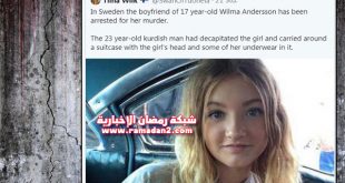 جريمة بشعة أقدم عليها شاب عراقي مع عشيقته الفتاة السويدية، بعد أن غدر بها وذبحها وفصل رأسها عن جسدها، لكنه تخلص من الجسد واحتفظ برأسها داخل دولابه ملفوفة بأوراق من الألمونيوم. وفي التفاصيل فقد ألقت الشرطة السويدية مؤخرًا القبض على شاب عراقي كردى يدعى «تشيكو أحمد شاباز -23 عامًا»، للأشتباه بإرتكابه جريمة قتل حبيبته السويدية «ويلما أندرسون – 17 عامًا»، …