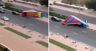 نجا عدد من الأطفال في الكويت من الموت، بعدما طارت بهم لعبة نطاطية في أحد شوارع البلاد. ووثق مقطع فيديو، اللحظات الصعبة للحادثة، حيث طارت اللعبة وسقط الأطفال أرضًا، في حين ذهبت اللعبة إلى طريق سريعة، قبل أن تتوقف السيارات تمامًا. فيديو / نجاة أطفال من الموت في أحد شوارع الكويت بعدما طارت بهم لعبة «النطاطية» قبل أن يجدوا أنفسهم …