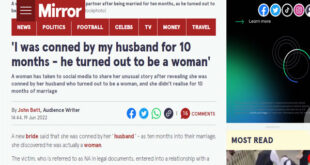 في مفاجأة مدهشة،اكتشفت فتاة في إندونيسيا أنها تزوجت امرأة وذلك بعد مرور 10 أشهر على زواجها، ورفعت على إثر ذلك دعوى قضائية ضد الزوج المحتال. وتعود تفاصيل الققصة الغريبة وفق صحيفة “ميرور” البريطانية، حينما التقى الزوجان لأول مرة على تطبيق مواعدة على الإنترنت. بعد ذلك تقابلا في مواعيد شخصية، ثم انتقل الزوج للعيش لدى شريكته المستقبلية وساعدها في رعاية والديها …