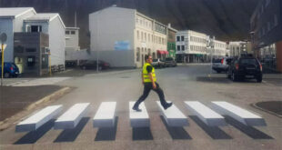 في خطوة تهدف لحماية المشاة وإجبار السيارات على تخفيف السرعة، صممت شركة Vegamálun GÍH طريقة ولا أذكى عبر تقنية الوهم البصري في أحد شوارع آيستلندا. والطريقة هي عبارة عن ممر وهمي يبدو للوهلة الأولى أنه حقيقي لكن في الواقع هذه مجرد قطعة فنية مصممة جيداً وبشكل لا يصدق لتبدو حقيقة، وفق موقع creativebloq. This pedestrian crosswalk looks like it's floating …