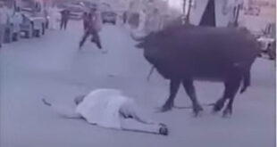 انتشر مقطع فيديو بين نشطاء مواقع التواصل الاجتماعي في العراق، لـ”جاموس” هائج يطيح بكل من يراه في الشارع بشكل صادم. ويظهر في الفيديو الذي قال النشطاء أنه في قضاء الزبير التابع لمحافظة البصرة جنوبي العراق، الجاموس الهائج وقد أطاح برجفل وسيدة بشكل عنيف كاد يودي بحياتهما. وظهر رجل مستلقى على الأرض بعد أن طرحه الجاموس أرضًا وأحدث إصابات به، وهو …